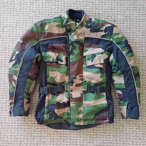 Materiál vrchní 500D CORDURA , 100 % polyamid, dvojitý materiál na ramenou a loktech, vnitřní Thermo vložky, 100 % polyester, chrániče na ramenou a loktech, atd. Cena 2300 Kč.