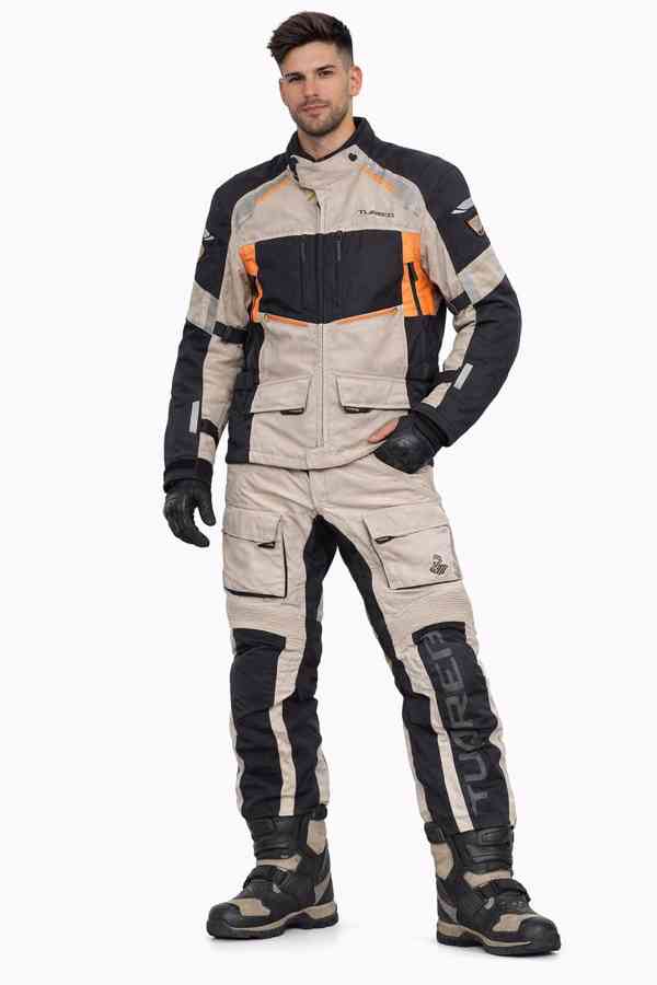 Materiál: kůže, 1,2 – 1.4 mm, včetně chráničů, prošité hlavní stehy, rozšířené vyztužené strečové panely, vnitřní vložky, CE chrániče GP, reflexní prvky, na lýtkách zip pro rozšíření, 2 vnitřní kapsičky, atd.