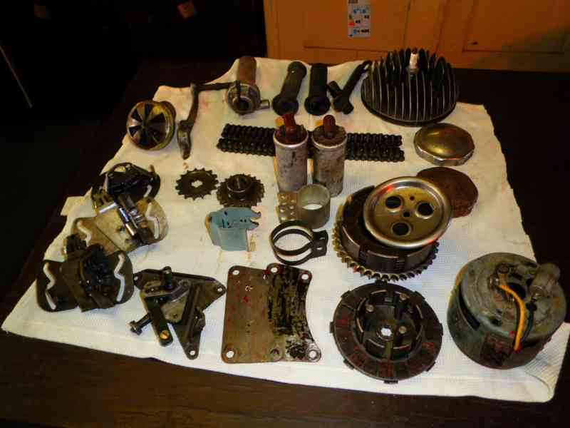 nabízím použité díli ,mustang ,pionýr, u tachometru prasklý uvnitř plastový proužek viz foto,blatník na simson přední k opravě, menší prasklina viz foto,cenu nabídněte + poštovné