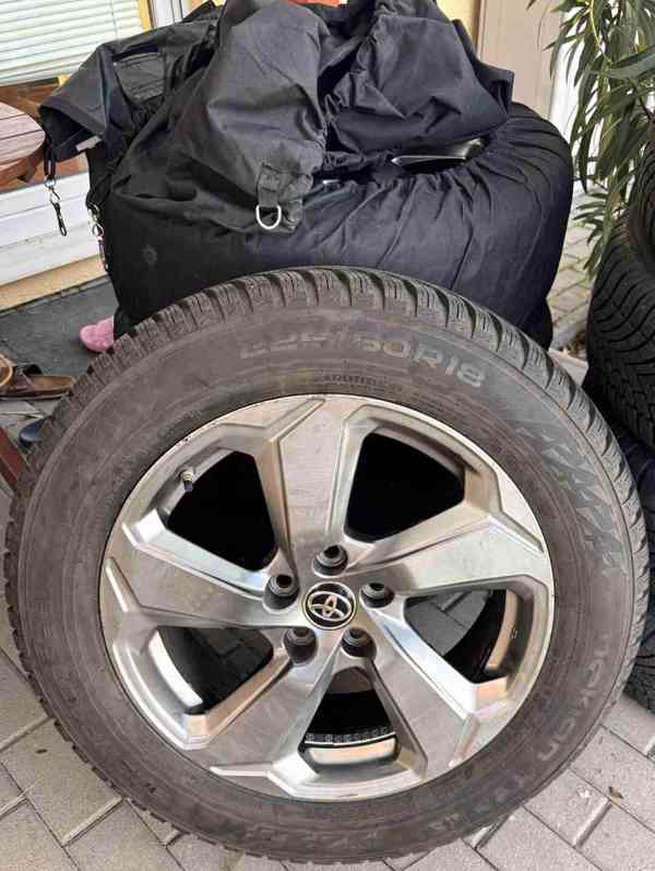 Prodám na RAV4 sadu (4ks) KOMPLETNÍ ZIMNÍ KOLA 225/60R18 Nokian Snowproof 2 SUV na Toyota RAV4 (pneumatiky + originální 18" ALU disky). Jeté jsou minimálně, jsou prakticky zánovní. Stáří (DOT) 0624 (vyrobeno 6. týden 2024). Ideální pro Toyotu RAV4 modelový rok 2019 a novější. Originální 18" ALU disky Toyota pro RAV4 (se středovými krytkami). Stav disků - drobné škrábance, na zimu dobré. Kola jsou vyvážená a připravená k montáži. Sada včetně TPMS senzorů a obalů pro přenos od Toyoty.