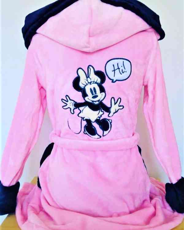 Krásny dámsky vyšívaný ružový župan DISNEY s kapucňou. Prijemny makucky material na dotyk. Kratky teply zupan ktory zahreje v chladnom pocasi. Zupan ma vrecka a opasok na zavazovanie v pase. Vysivany motiv Minnie Mouse. velkost S