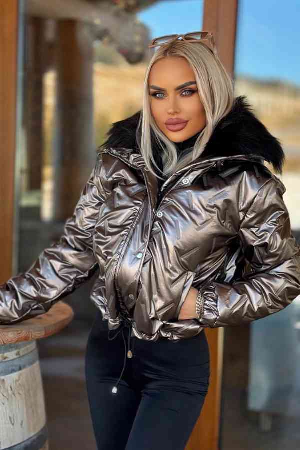 Krasna damska zimna bunda vo farbe cappuccino s odopinatelnou kozusinou. Bunda ma kapucnu. Nepremokavy material. Velkost M.