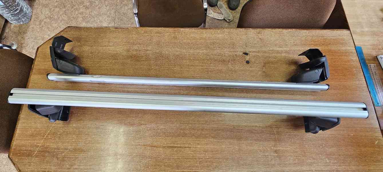 Prodám střešní nosič na Renault Captur 2013-2019. Zamykací, včetně dvou klíčů. Jeden příčník byl provrtaný, je zavařený - viz foto.