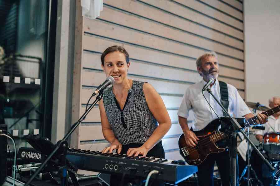 Dvě mladé dámy a tři zkušení muzikanti hrají v obsazení kytara, baskytara, klávesy, bicí a zpěv. Žádné samohrajky, podklady, playback.