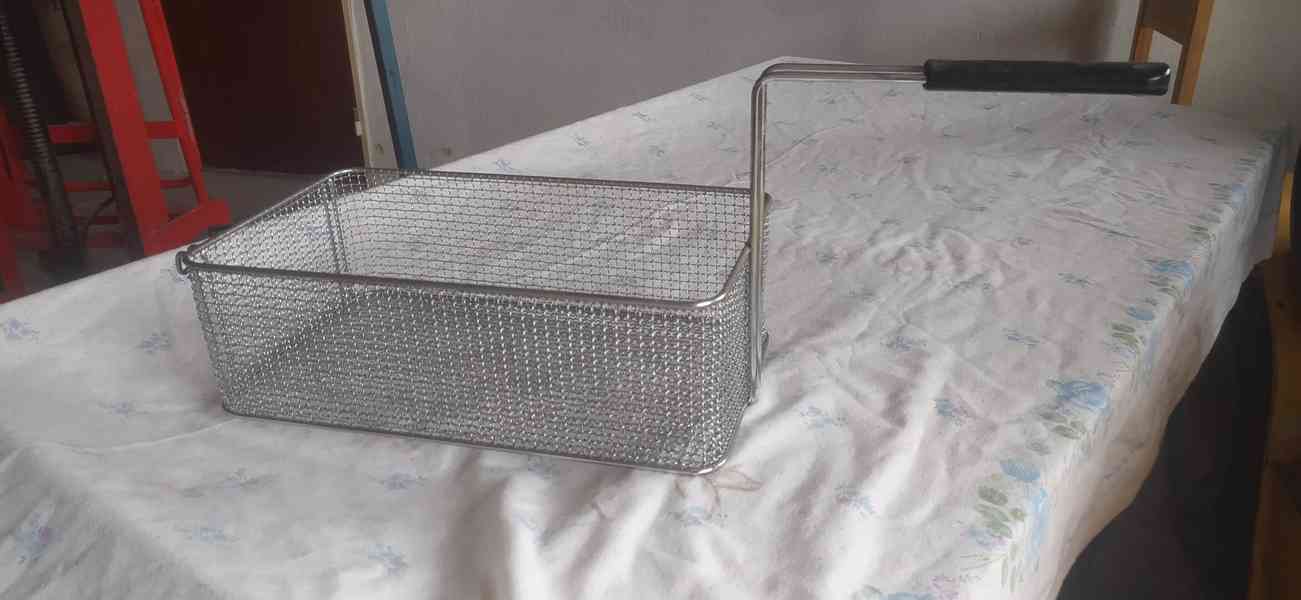 Koš do velké fritézy použitý, ale v dobrém stavu. Rozměr ŠxDxV: 22x37,5x12 cm + madlo: 23 cm. Nevyhovuje vám rozměr, pošlete požadavek. Cena bazar: 1.990,- Kč + doprava. (kód: 070922-03)