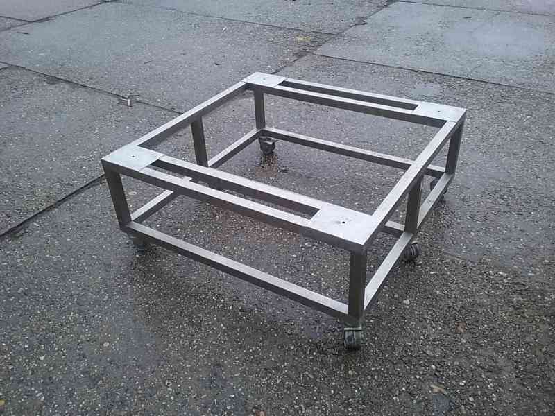 Podstavec pojízdný, materiál nerez, dobrá nosnost, bylo použito na pizza pec. Využitelné universálně; pódium, stánek, restaurace, dílna, servis, atd.. Velmi kvalitní provedení s velmi dobrou nosností, dobrá manipulace díky 6 otočným dvojitým kolečkům s brzdou. Rozměr: 1150 x 1150 x 450 mm. Použité, ale dobrý stav, cena: 5.990,- Kč + doprava. (kód: BUV100112)