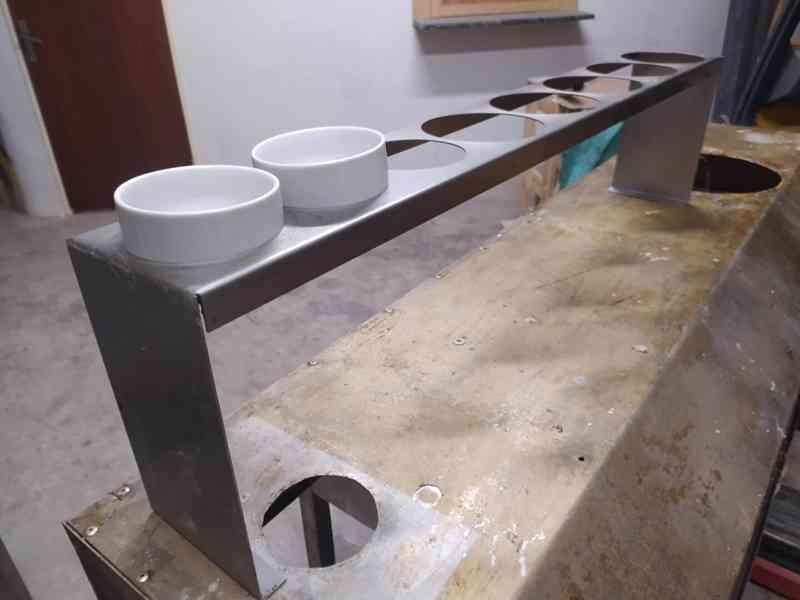Nástavec na stůl do kuchyně, na bar, do cukrárny, pizzerie, výroby atd.. Využijete všude, kde potřebujete mít po ruce roztříděnou zeleninu, ovoce, pochutiny, kečup, majonézu, ….. Rozměr DxhxV: 1200 x 170 x 300 mm, počet otvorů 8, průměr 3 x 120 mm; 5 x 150 mm. Vložit můžete nádoby plastové, keramické, nerezové (nejsou součástí). Bazarová cena: 1.490,- Kč + doprava. (kód: 2021392)