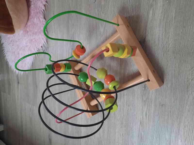 Klasická logická protahovací hra, podporující logické myšlení a zároveň motoriku dětí již od raného věku. Vhodné pro děti již od 1 roku, neboť hra neobsahuje součásti, které by dítě mohlo vdechnout. Velmi pěkné zpracování ze dřeva.