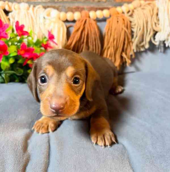 kluci i holčičky – jsou malými uzlíčky okouzlujícího šarmu. S jejich charakteristickými dlouhými těly, sametovými ušima a zářivýma, zvědavýma očima jsou plná hravé energie a milých mazlivých chvil. Každé štěně má svou vlastní malou osobnost, ale všechna sdílejí klasickou jezevčí sebedůvěru a roztomilou povahu. Ať už dovádějí nebo se schoulují do klubíčka, zaručeně vám roztají srdce.“