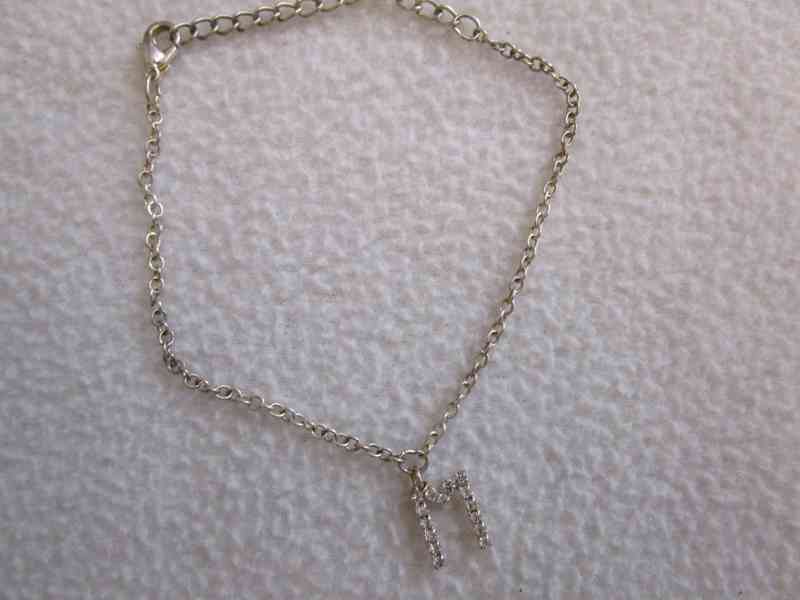 Pěkný náramek s přívěskem M s kamínky, cena jen 39 Kč.