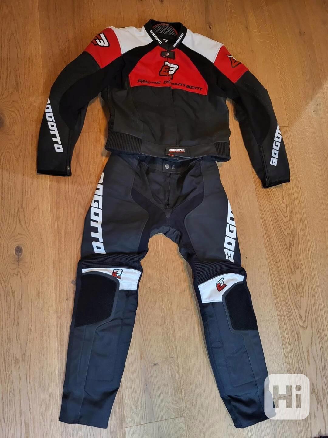 Kožená 2 – dílná kombinéza od značky Bogotto model Losail ve velikosti – 50. Je nová pouze 5× odzkoušená, samozřejmě velmi dobrý stav.