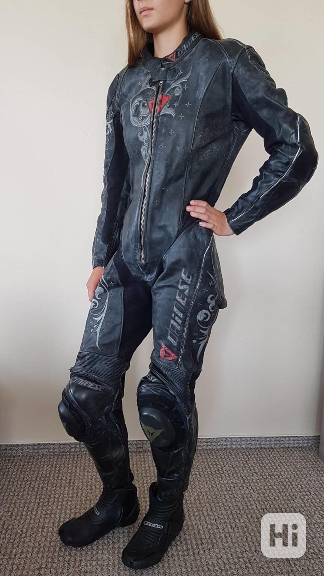 Kožená 1 – dílná kombinéza v dámském střihu od značky Dainese model Yu-Lady ve velikosti - 38 vhodná i na postavu o číslo menší. Je použitá, po větším pádu. Vhodná na dojetí nebo někam jako dekorace. Osobní odběr nebo mohu poslat.