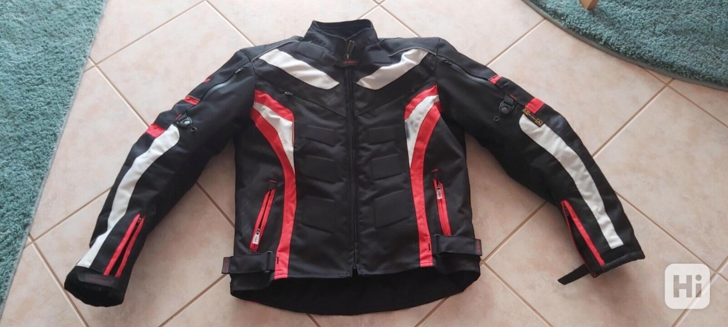 Textilní kombinéza od značky Heyberry/Fastway. v udané velikosti - M (48). Koupeno v roce 2019, málo použité, celkově velmi dobrý stav, včetně chráničů. Větrací průduchy, vyjímatelná podšívka, ISO 4916 bezpečnostní švy, 3M Scotchlite (TM) reflexní materiál, 2 vnější kapsy, atd.