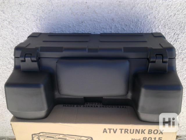 Maxikufr určený pro čtyřkolky (quad, ATV, Sikkia) o objemu 150 litrů (nikdy nepoužitý, originálně zabalený) vestavěné opěradlo uzamykatelný (2× klíč) dostatek úložného prostoru kovové zámky voděvzdorný rychlá a snadná montáž kvalitní nárazuodolný vysokohustotní polyetylen LLDPE těsnění proti vnikání vody pohodlná čalouněná opěrka zad zesílené dno zásobníku dvě zadní odrazky šířka 90 cm.
