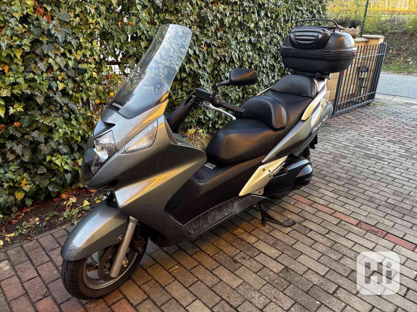 Prodám skůtr Honda Silverwing FJS 600. Rok výroby 2005, vzhledem ke stáří výborný stav jak kosmetika, tak motorově. Skůtr má najeto 27xxx. Tento rok najeto asi 100 km. Prodávám z důvodu nevyužití, jistě nějakému páru poslouží na cestování.