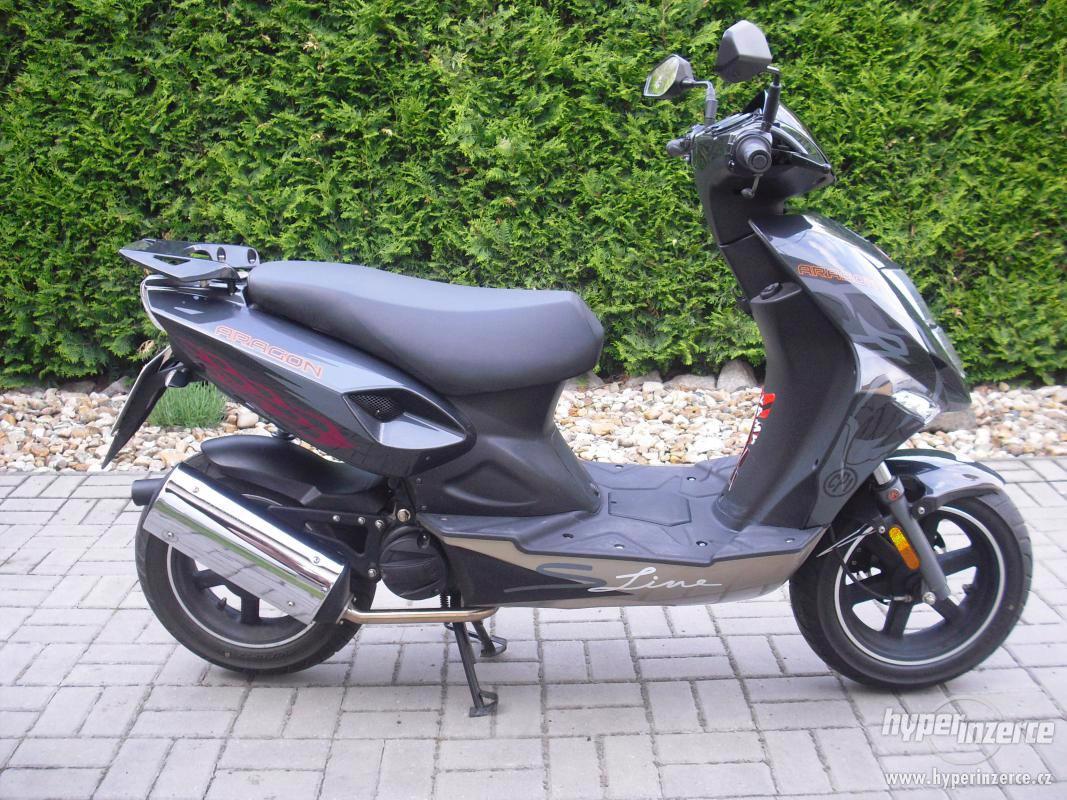 Prodám skutr CPI aragon 50 cm. Rok výroby 2010, najeto 1700 km, v perfektním stavu. Pořizovací cena 30 000, nyní 18 000 kč. Brzda přední/zadní kotoučová/bubnová Chlazení vzduch Maximální délka 1790mm Maximální rychlost 45km/hod Maximální výkon 2.4/5900 (PS/otáčky za min. ) Maximální výška 1145mm Motor dvoutakt Objem 49,2ccm Počet a umístění válců 1 Přední pneumatika 12" Převodovka variátor Rozvor 1290mm Startování el. startér Váha 99kg Výška sedla 740mm Zadní pneumatika 12".