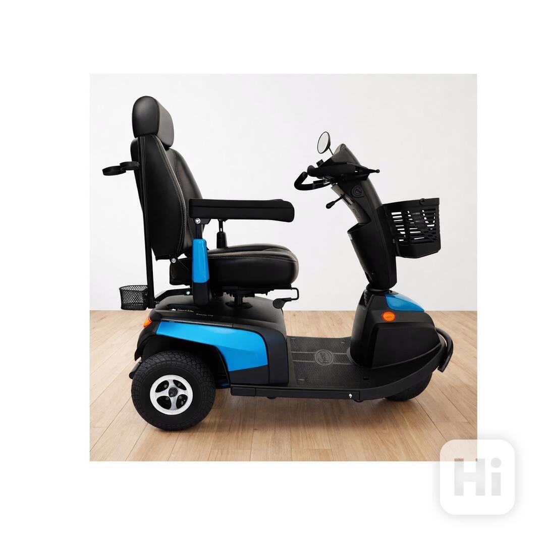 Prodám tříkolku Invacare Orion Pro 3 určenou pro osoby se sníženou schopností pohybu. Dobré baterie 2x12V 73Ah, motor 600 W, délka 130 cm, šířka 65 cm, rychlost 12 km/h, nosnost 126 kg. Součástí je nabíječka, opěrka hlavy, držák holí, košík a zpětné zrcátko. Záruka 12 měsíců, pozáruční servis, možnost doručení