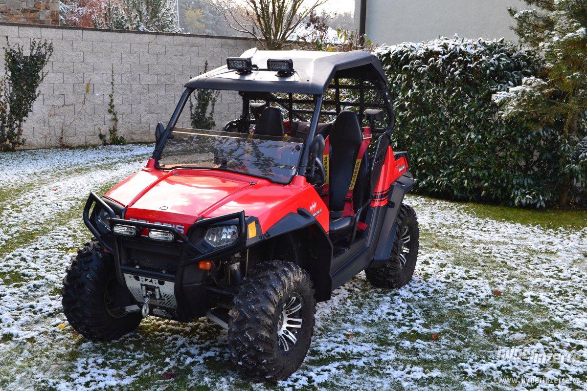 Prodám čtyřkolku Polaris rzr 800 EFI, R.V. 2009,červená,najeto 160 MTh,-2.490 km.mnoho doplňků, naviják, sněžná radlice 150 cm,střecha,čelní sklo, rámy, závěs,Alu kola, tuning. volant, rámy, LED světla a další. Výborný stav, nevyužitá,ježděná pouze rekreačně.Po výměně všech olejů a náplní.Homologace a doklady bez rychlostního omezení.