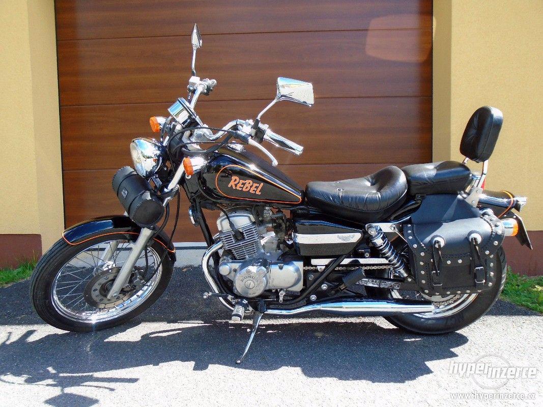 Prodám motocykl Honda CA 125 Rebel, r.v. 1998, první reg. 1999, najeto 47 100 km. Nehavarovaná, udržovaný stav, nová baterie, STK do 8/2017.Ideální pro začínající jezdce (A1 od 16ti let) - ovladatelná, spolehlivá, nízká spotřeba cca 3l/100 km. Doplňková výbava: opěrka spolujezdce, kožené brašny, kožená rolka, chromované gripy.