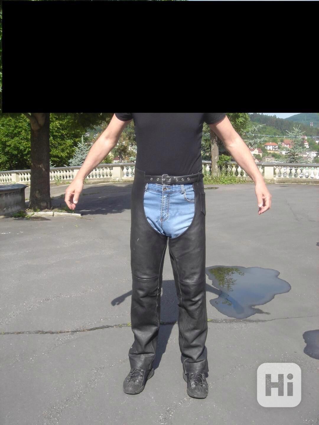 Kožené chaps, rozepínací nohavice po stranách, velmi kvalitní, na vysokého muže 190 - 200 cm - nové