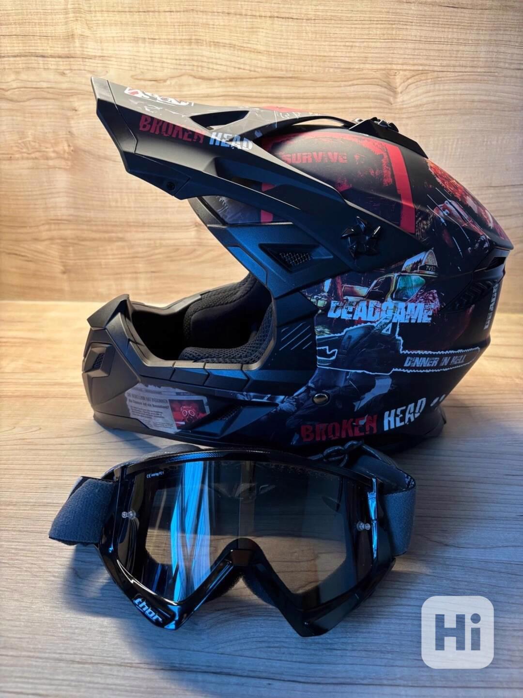 Motokrosová přilba od značky Broken Head ve velikosti – S (55/56). Je málo použitá a ve velmi dobrém stavu, včetně brýlí Thor.