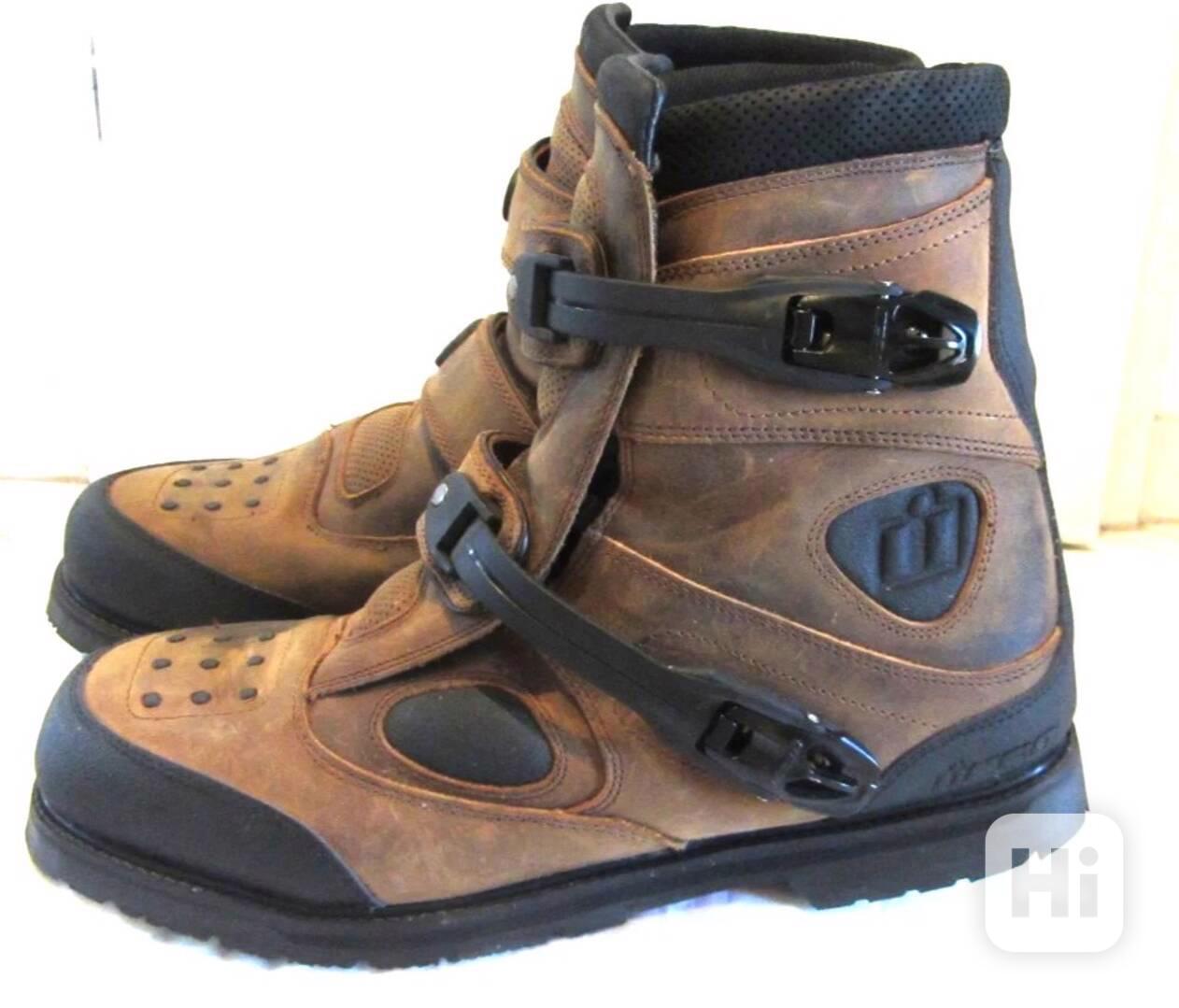 Cestovní voděodolné endurové boty od značky ICON model Patrol ve velikosti – 47 vhodné i na nohu o číslo menší. Jsou minimálně použité a ve velmi dobrém stavu.