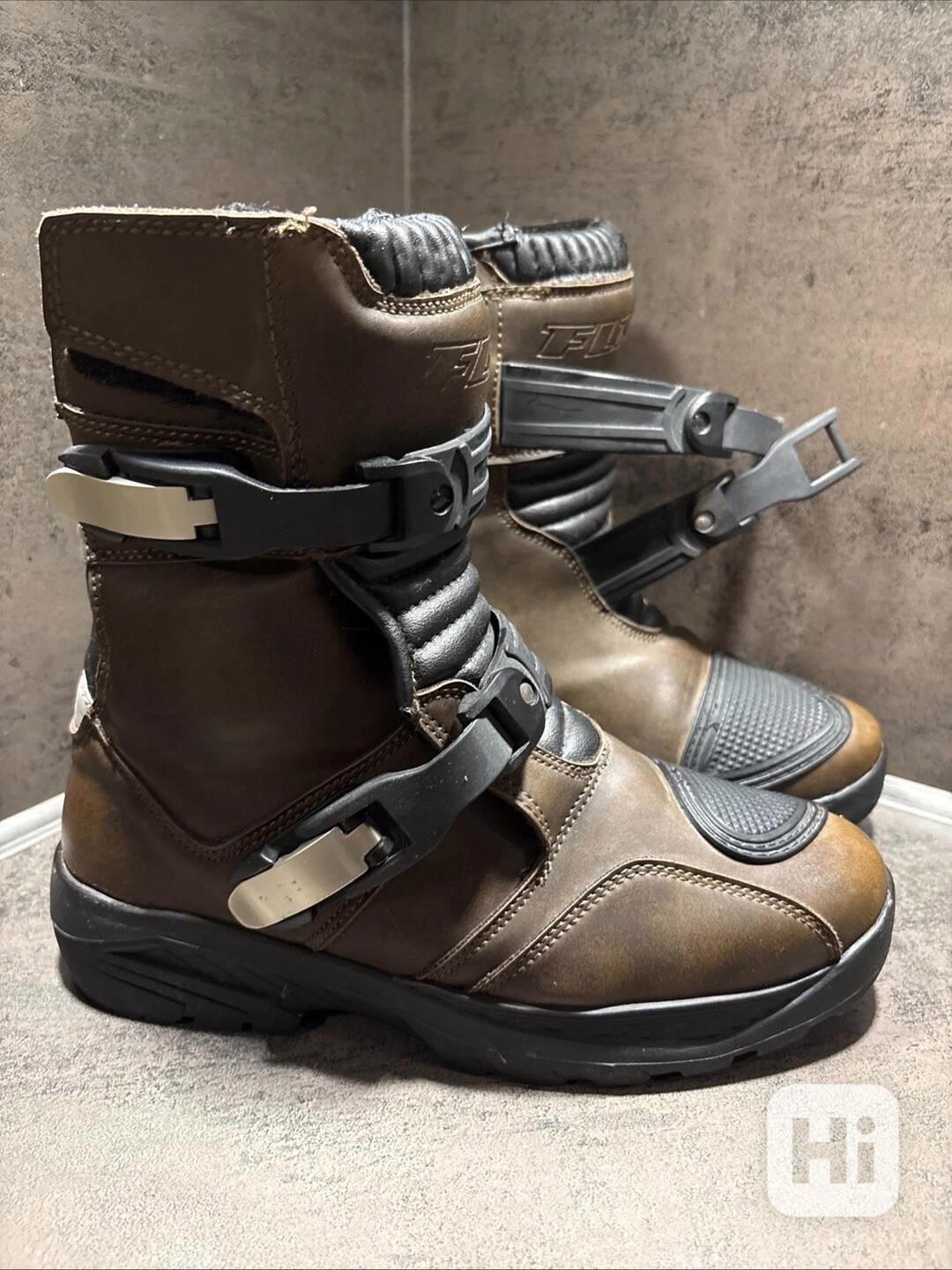 Cestovní endurové boty od značky FLM model Adventure 1.0 ve velikosti – 40 vhodné i na nohu o číslo menší. Jsou nové pouze 3× odzkoušené samozřejmě ve velmi dobrém stavu.